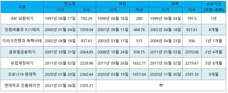 역대 코스피 폭락 및 회복 히스토리