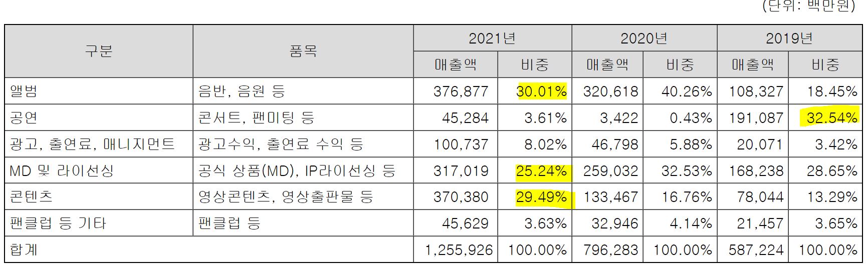 하이브 매출 구성