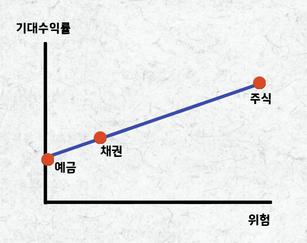 위험과 기대수익률은 정비례 관계입니다.